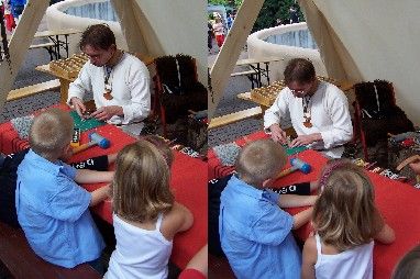 Kinderbasteln im Frankfurter Zoo. Die Kinder konnten sich Armbänder mit ihrem Namen, kleine Lederbeutel und Ketten mit indianischen Perlen selbermachen.