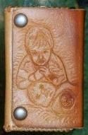 Schlüsse-Etui für: zwei Schlüsselbunde und integriertem kleinen Geldfach für Scheine und Münzen. Punzier und Modellier-Arbeit nach Bildvorlage. Rand einfach umflochten.
