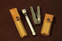 Holster für Leatherman "Wave" und LED-Lampe, naßgeformt, leichte Verzierung