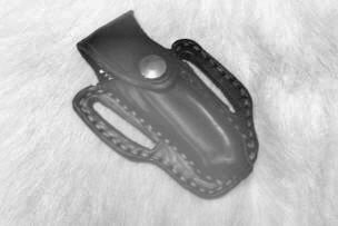 Gürteltasche für: Lindner Springer mit kleiner Taschenlampe, schwarzes Sattelleder, Naßgeformt, Sattlernaht, Finish mit Lederbalsam